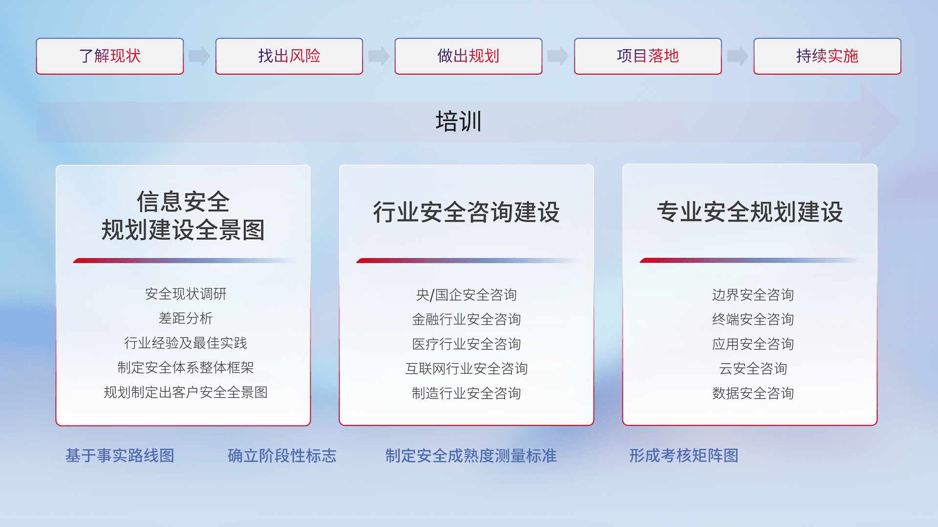 通过专业的法律咨询解读、、合规架构体现、、、、差异化解决方案、、、、测试实施支持等服务,,,,为客户量身打造等保合规体系。。